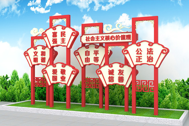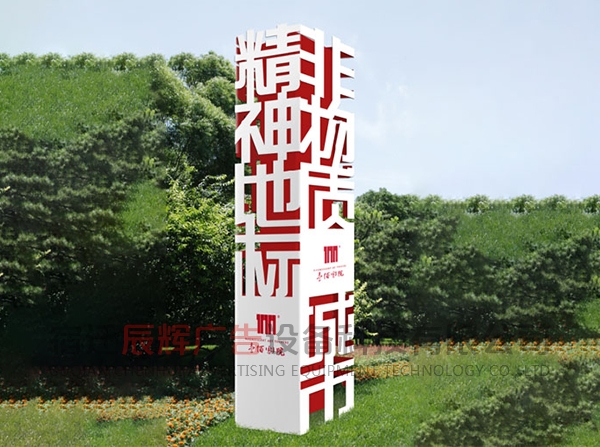 精神堡壘具備一定的體量和高度,能夠獨(dú)立表達(dá)企業(yè)形象的大型單體標(biāo)識(shí)。精神堡壘特指為商業(yè)體、主題園區(qū)、交通站點(diǎn)等公共場(chǎng)所,樹(shù)立醒目且符合場(chǎng)地氣質(zhì)的藝術(shù)構(gòu)筑物。精神堡壘的擺放的位置也尤其重要,人都有視覺(jué)盲點(diǎn),精神堡壘給人一種清新和諧的感覺(jué)。